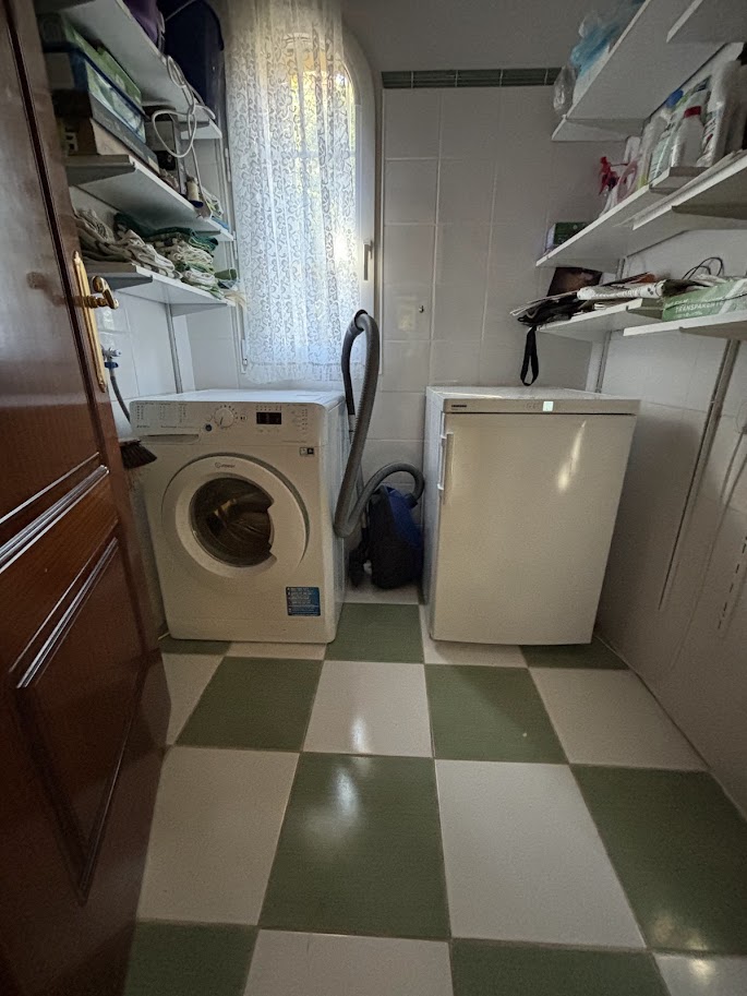 Wir gehen 1 Etage von der Wohnebene nach unten. Auf dieser Ebene finden Sie 2 geräumige Schlafzimmer, 1 mit Blick auf den Pool. Es gibt einen Fitnessraum, der mit einem Rudergerät, einem Laufband, einem Heimtrainer und verschiedenen Hanteln ausgestattet ist. Auf dieser Etage befinden sich auch ein Fernsehzimmer und ein professionelles Billardbecken mit angrenzender, teilweise überdachter Terrasse mit Stehtisch und Lounge-Set. Von dieser Etage aus gelangt man auch in die Waschküche (Waschmaschine, Trockner, Wäscheständer und extra Kühlschrank). Hier finden Sie auch ein 2. Gäste-WC.